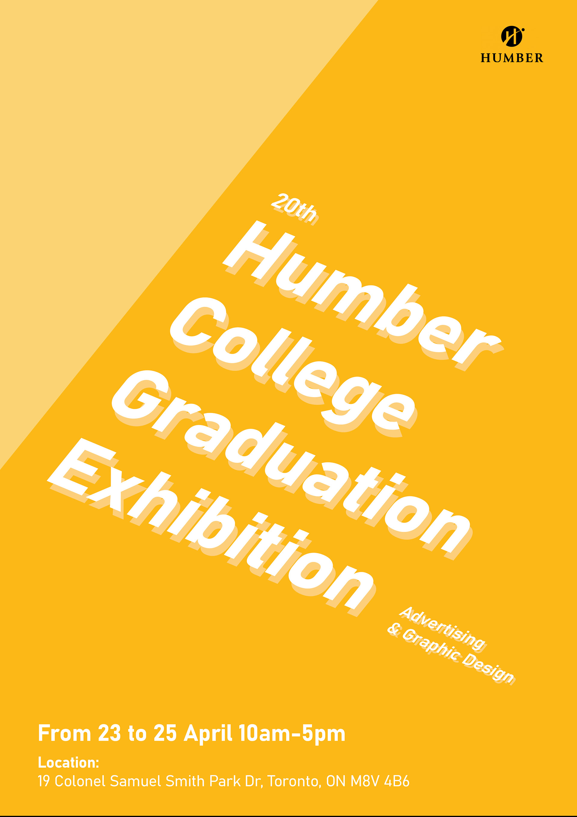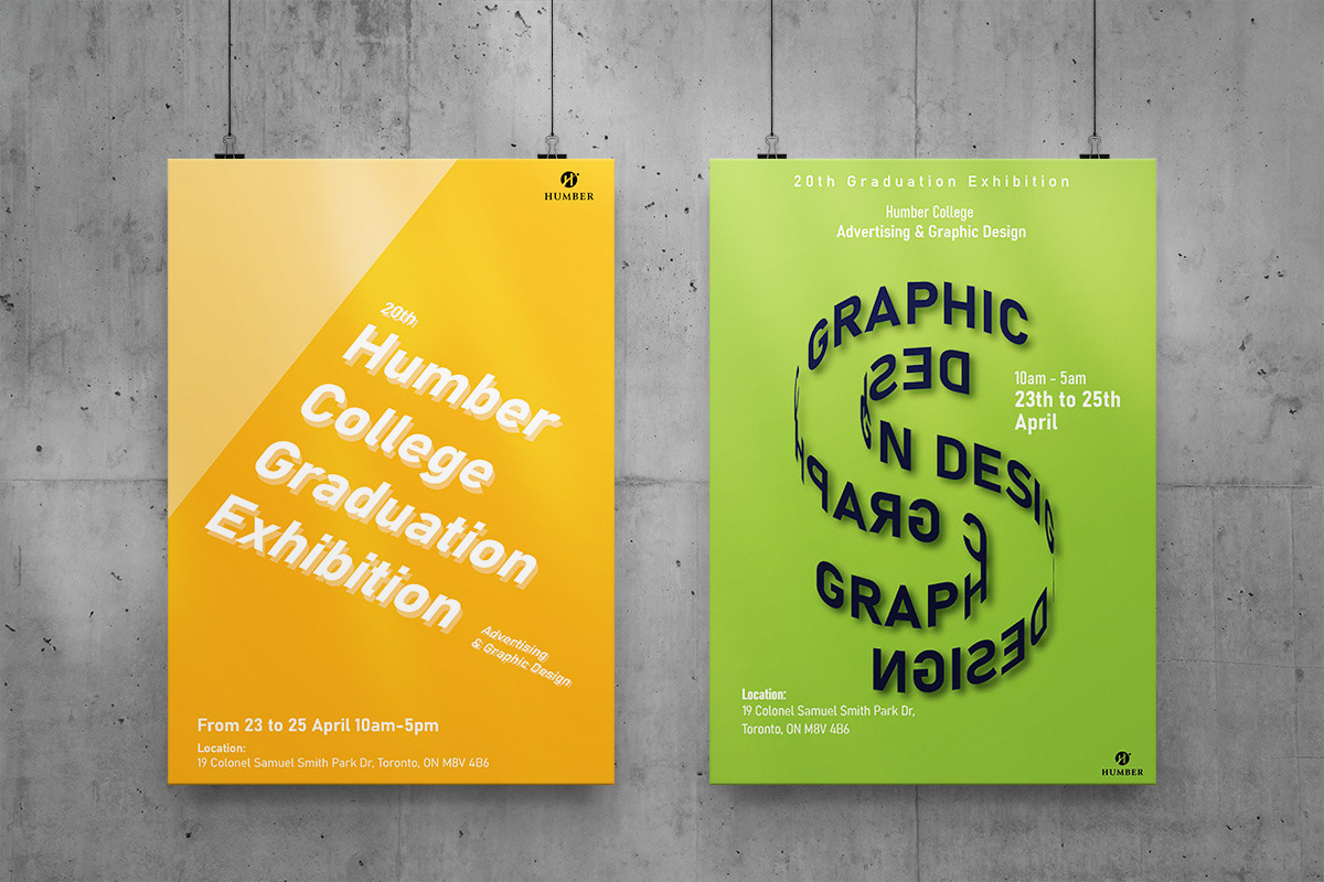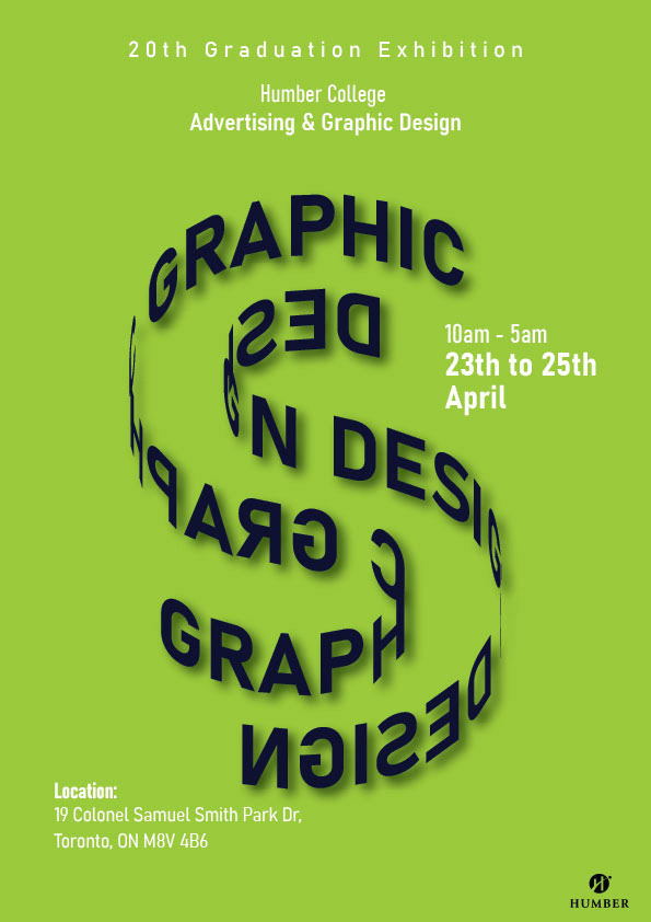To design a graduation exhibition poster that effectively communicates the identity and creative spirit of Humber College’s Advertising & Graphic Design program, while attracting diverse audiences and aligning with institutional branding.